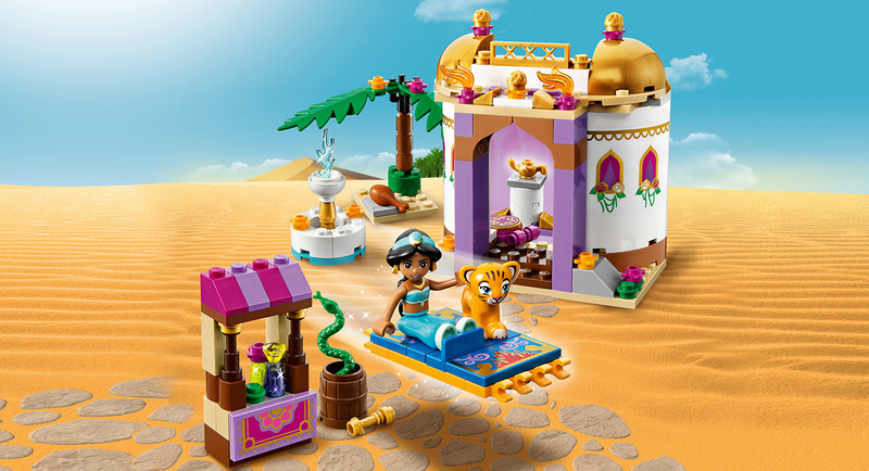Добро пожаловать в Аграбу, землю тайн и чудес, дом принцессы Жасмин. Играй с принцессой и ее ручным тигром Раджой во дворе дворца. Чем же они займутся сегодня? Может быть отдохнут у фонтана или отправятся в путешествие на ковре-самолете? Или пойдут на шумный базар, где увидят заклинателя змей? А потом Раджа положит лапу на волшебную лампу и вызовет Джина! Построй дворец играй в нем!